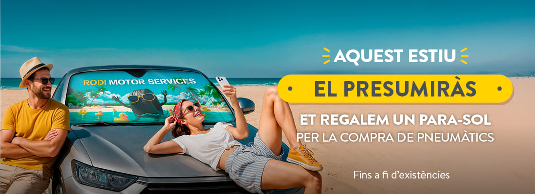 Aquest estiu et cuidem el teu cotxe també aparcat. Compra ara els teus nous pneumàtics a Rodi al millor preu i emporta't el teu regal.
